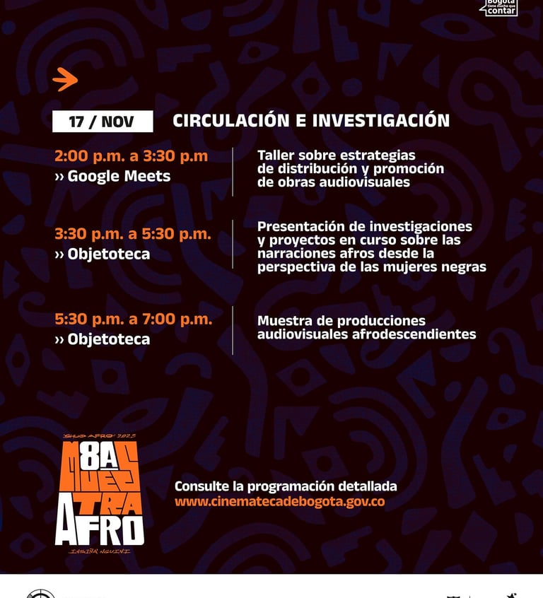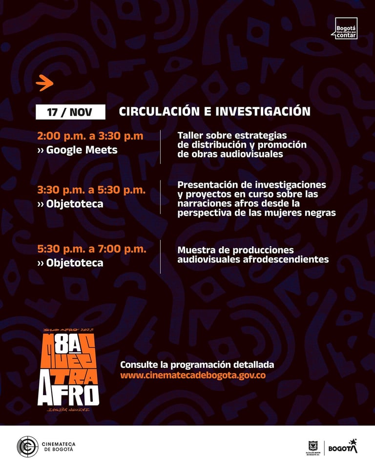 Bogotá es una ciudad diversa y multicultural que alberga una rica herencia afrodescendiente. Sin embargo, estas voces y narrativas frecuentemente no se han representado adecuadamente en los medios audiovisuales. Este encuentro busca abordar esta brecha y destacar la importancia de las contribuciones afrodescendientes a la cultura audiovisual.